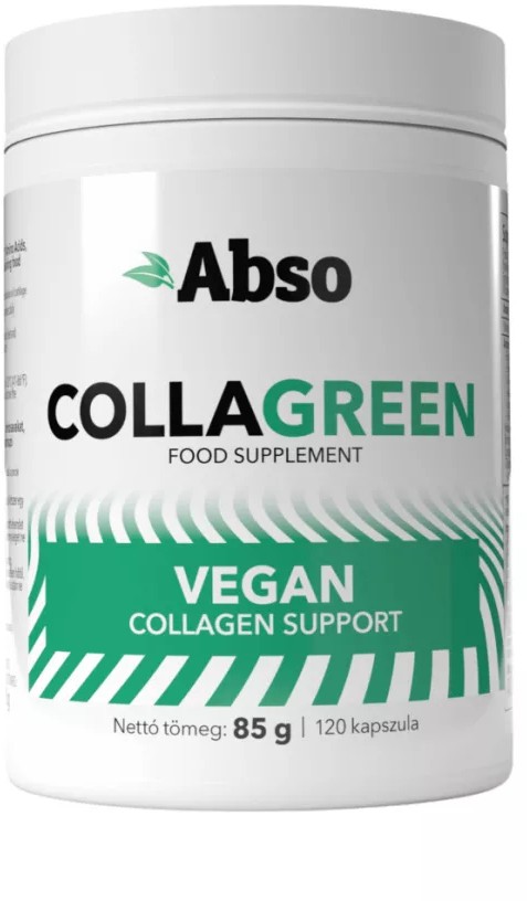 Bővebb információ a termékrőlAz Abso CollaGreen egy prémium, 100%-ban növényi alapú étrend-kiegészítő kapszula, amely a kollagénképződés támogatására lett megalkotva. A C-vitamin hozzájárul a normál kollagénképződéshez, amely kulcsfontosságú a bőr, a porcok és a kötőszövetek rugalmasságának fenntartásában. Minden kapszulában jelen vannak a kollagén legfontosabb építőelemei. Melyeket kiegészít a szépségápolásban jól ismert hialuronsav, amelyet gyakran említenek a bőr feszességével és hidratáltságával kapcsolatban. A természetes szilíciumforrást biztosító bambuszrost a haj- és körömápolásban népszerű összetevő, míg a tőzegáfonya-kivonat közkedvelt antioxidáns hatású gyümölcs. Az Abso CollaGreen egy komplex, modern formula, amely kompromisszumok nélkül illeszkedik a vegán életmódba, és 120 kapszulás kiszerelésével egy teljes hónapra nyújt támogatást a mindennapokban. Adatok Kiszerelés: Doboz Tömeg: 85 g/db |